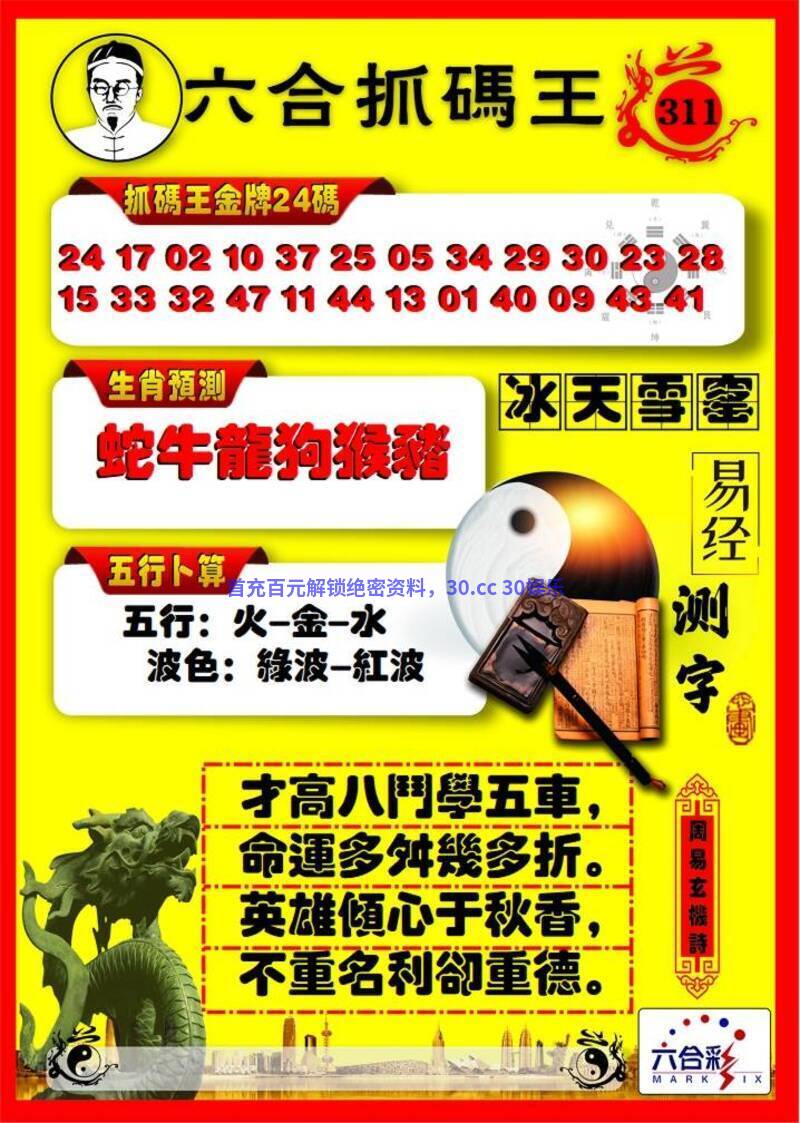 311期:绝杀五码🛡18.22.27.30.34🛡开:蛇37准