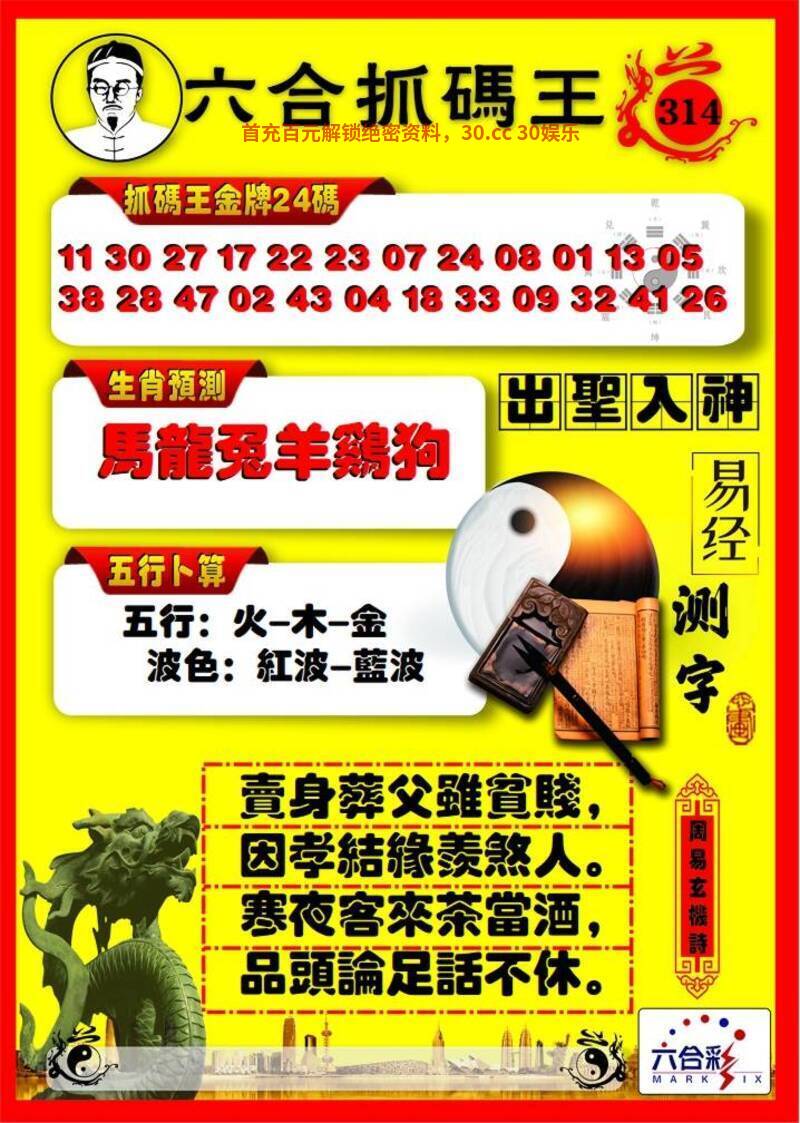 314期:绝禁一肖💫牛牛牛💫开:羊23中